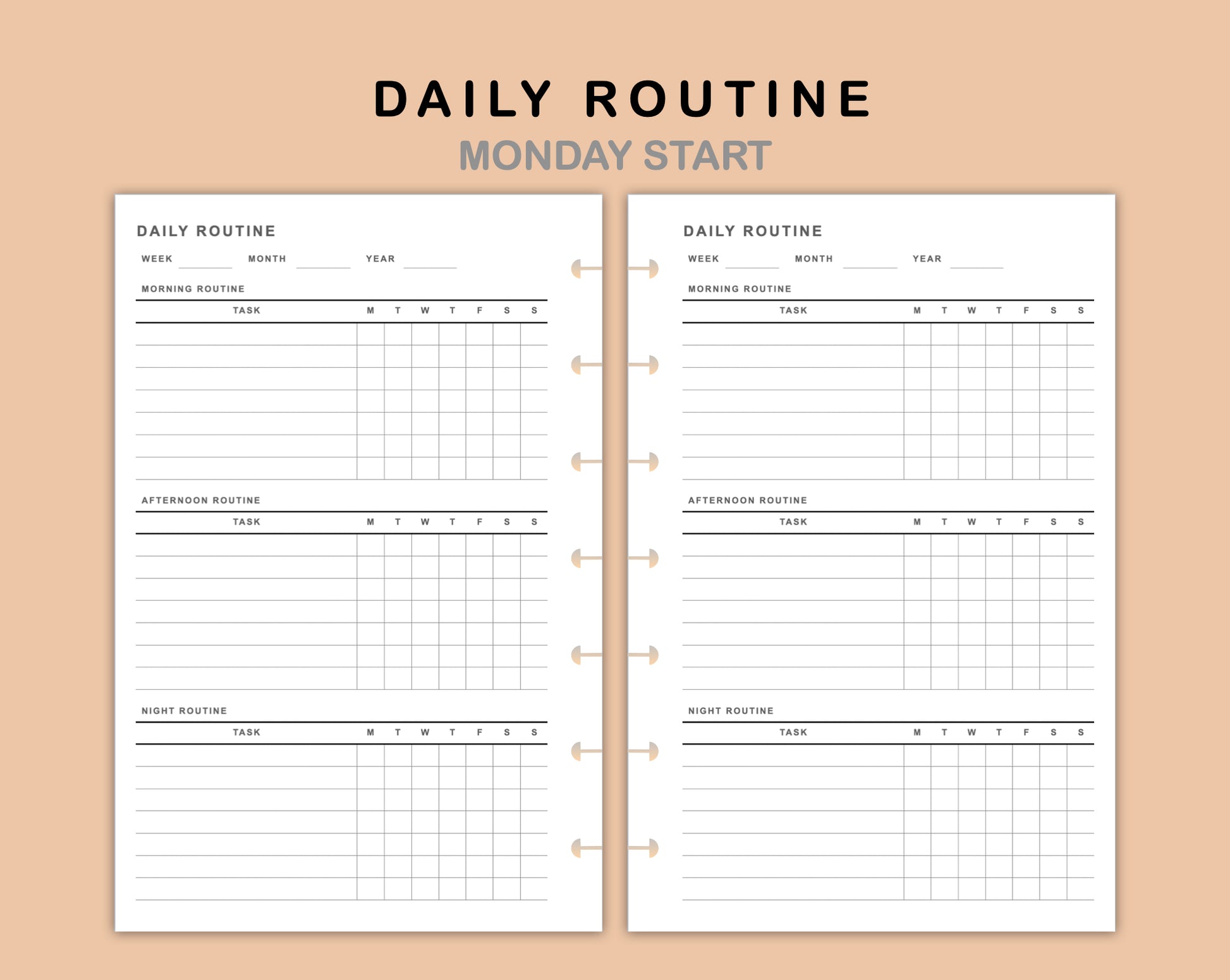 This Daily Routine Inserts is made to help you keep track of your daily routine (Morning Routine/ Afternoon Routine/ Night Routine). The planner is available in both Monday start and Sunday start.