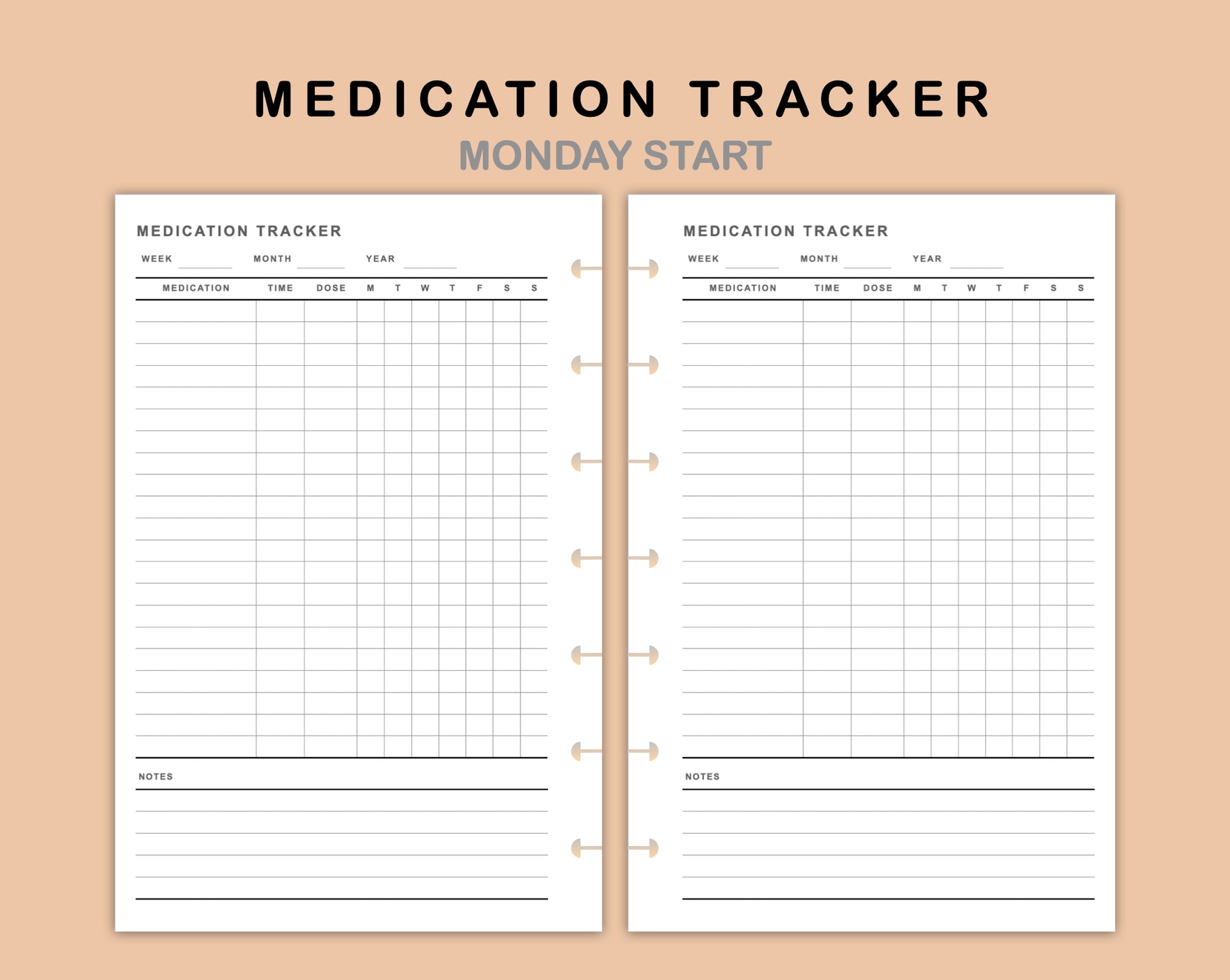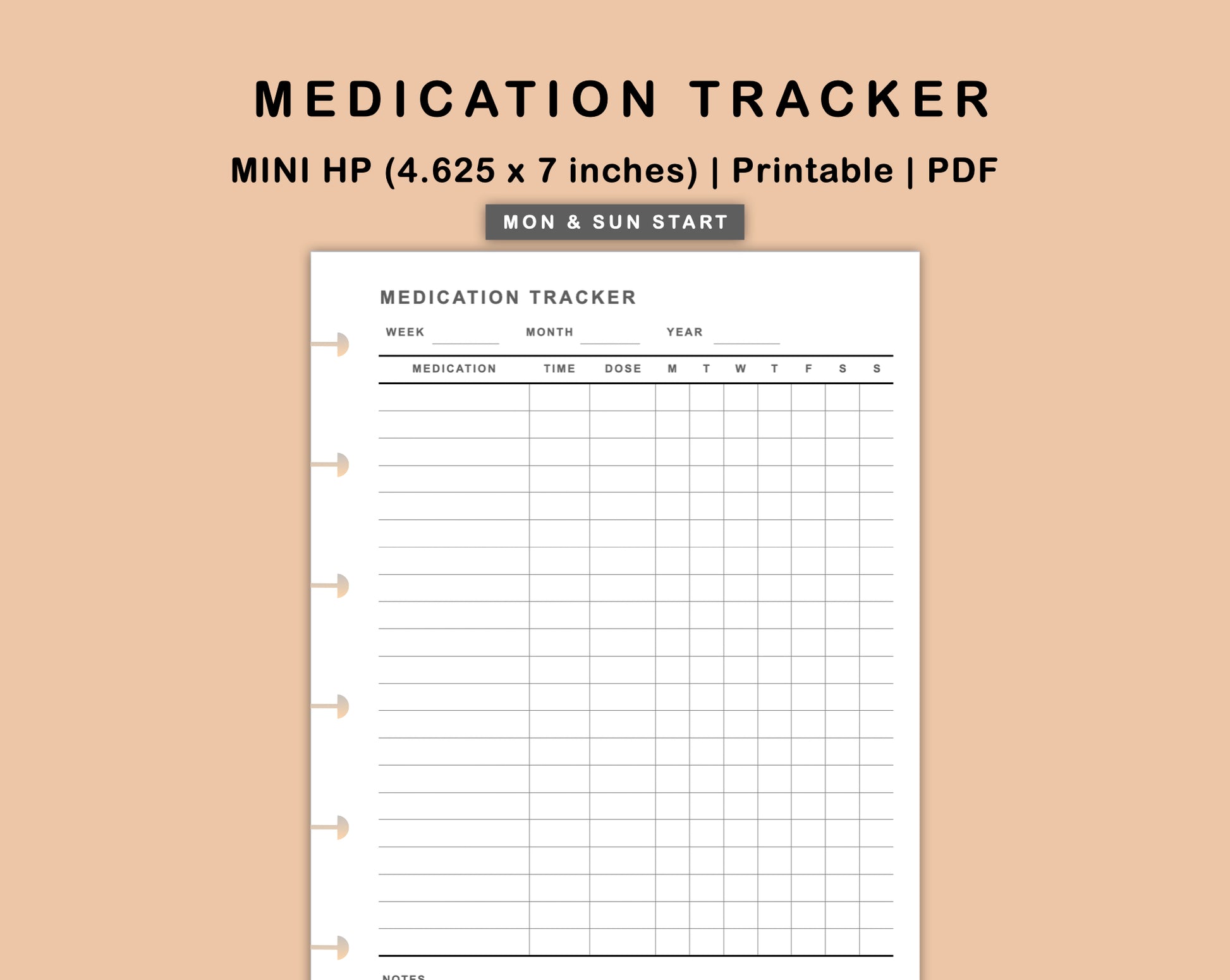 This Medication Tracker Inserts is made to help you track your medication intake. It is available in both Monday start and Sunday start.