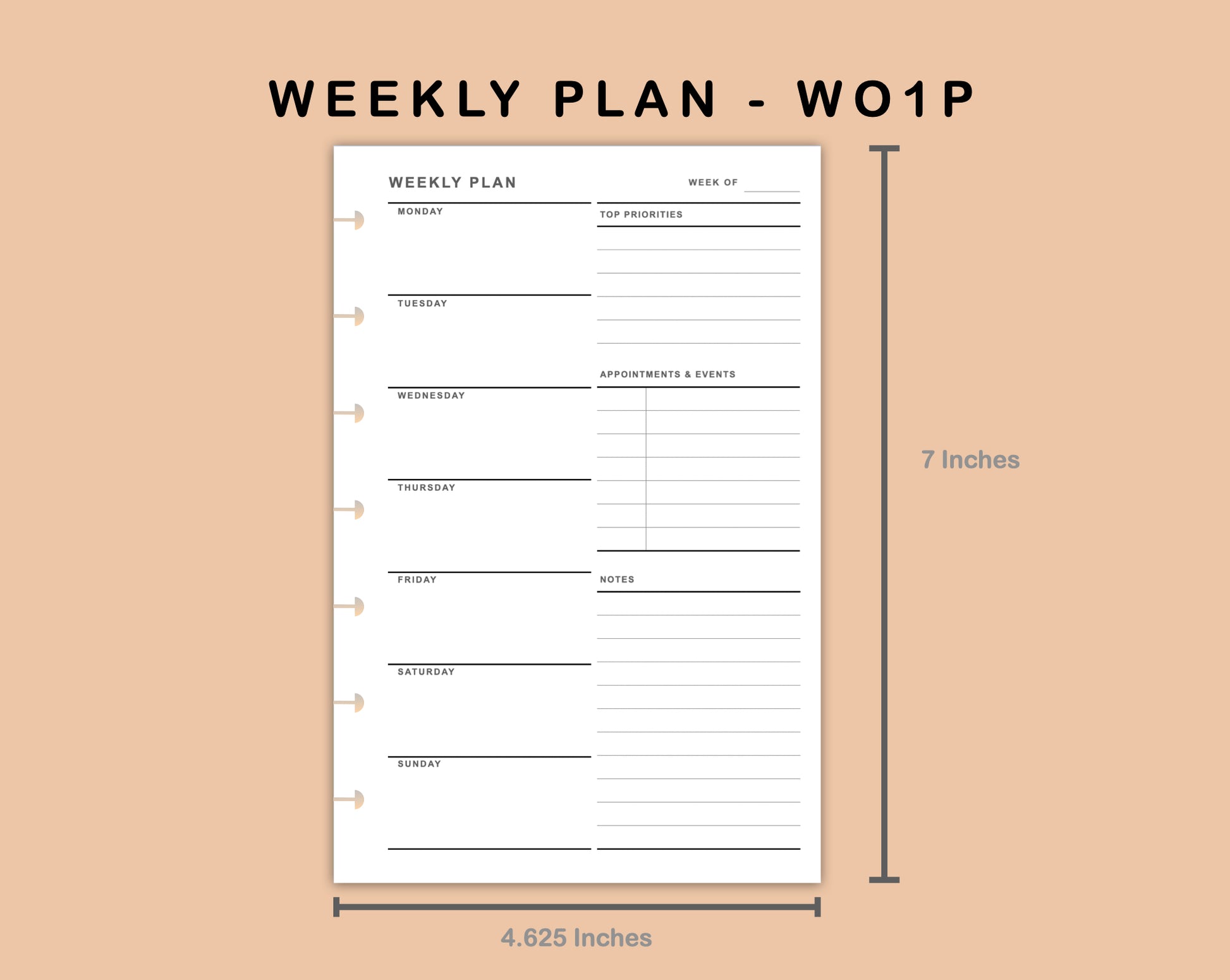 Mini Happy Planner Inserts - Weekly Plan - WO1P - with Top Priority