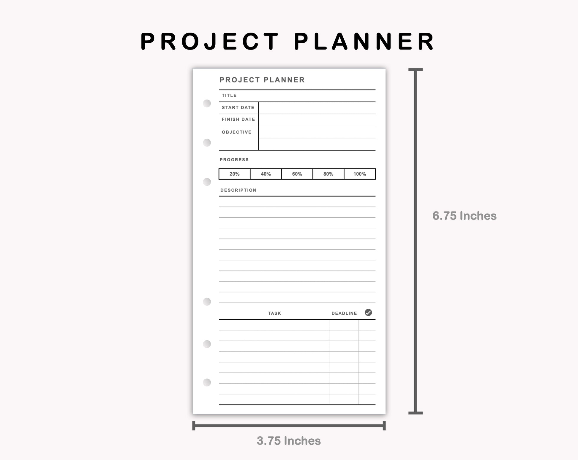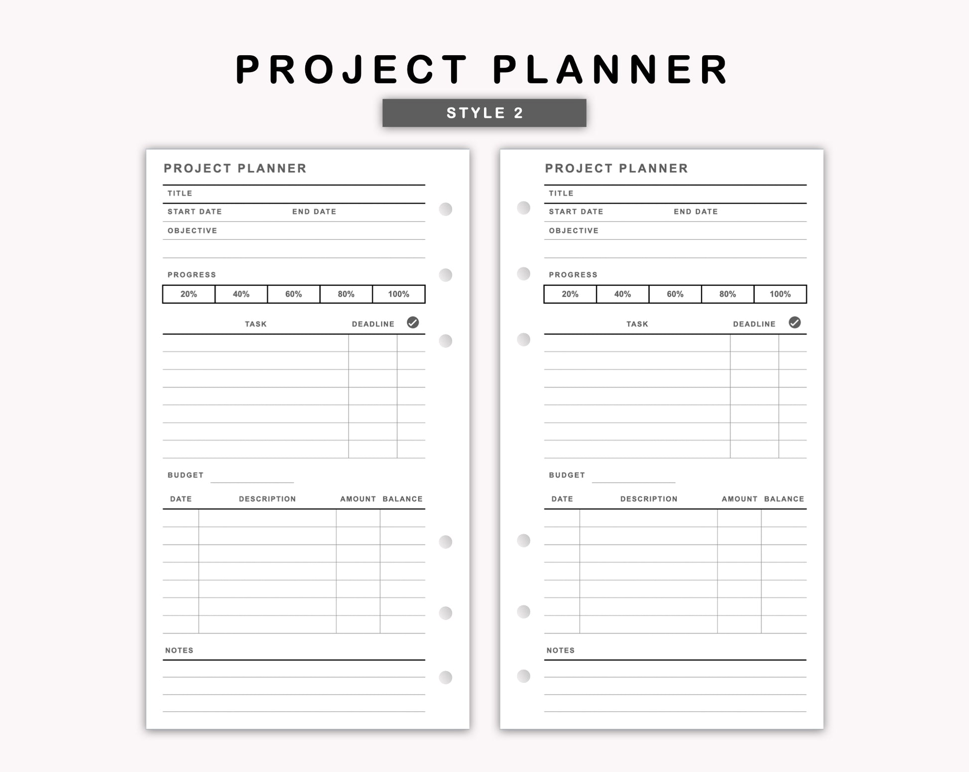 This Project Planner Inserts are made to help you plan, organise, and track your project. The Inserts are designed in 2 styles. Choose the one that matches your preference.