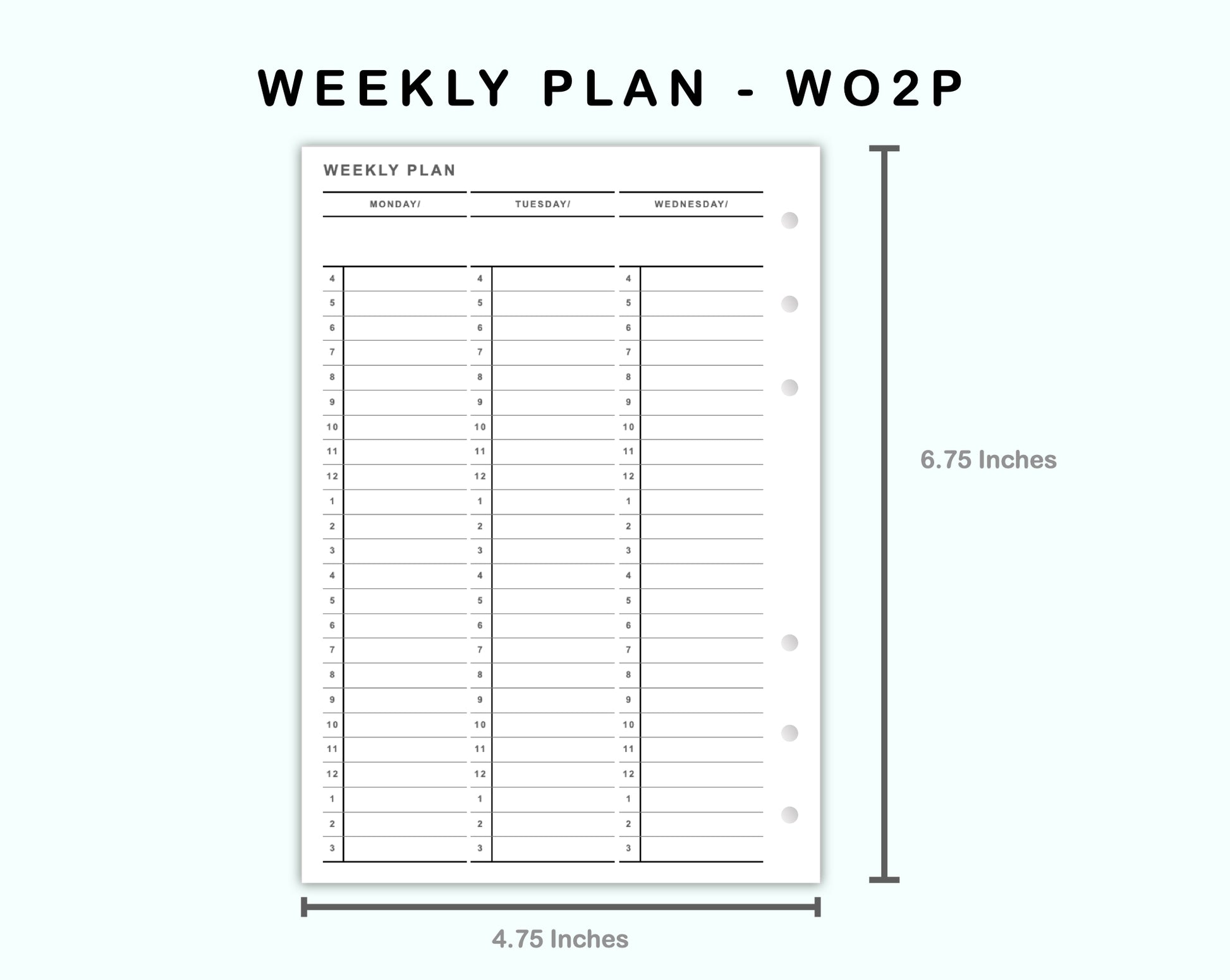 This Undated Weekly Planner Inserts (Week on 2 page) is made to help you plan and manage your schedule in a week.