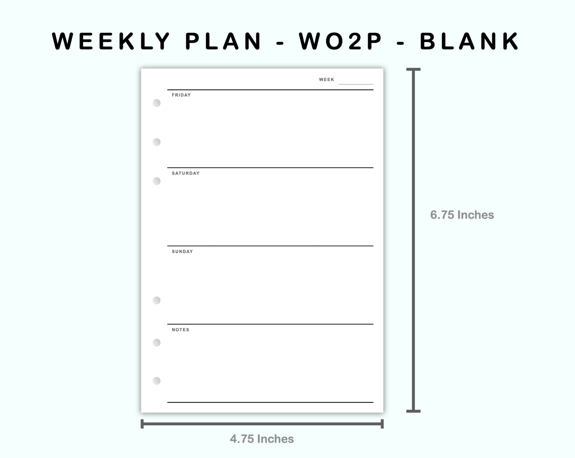 Personal Wide Inserts - Weekly Plan - WO2P - Blank