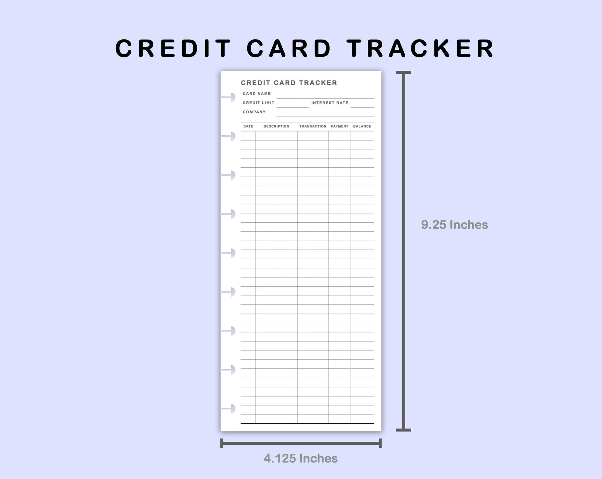 This Credit Card Tracker Inserts is made to help you track your expense/ payment.