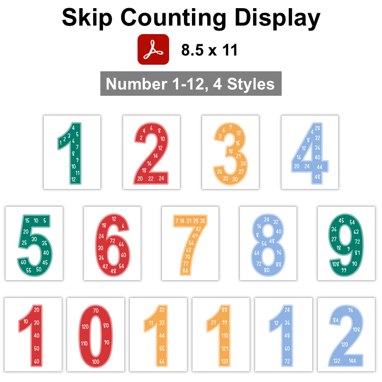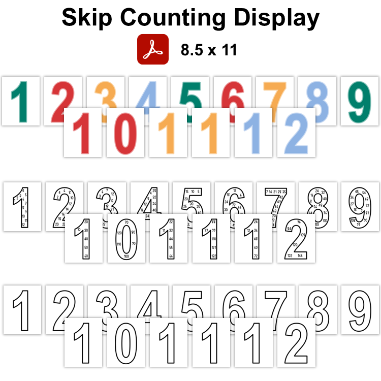 • 1 PDF file containing a ready-to-print Classroom Skip Counting Display (60 Pages).