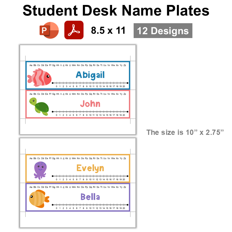 • 1 PDF file containing ready-to-print desk plates (12 Pages).
