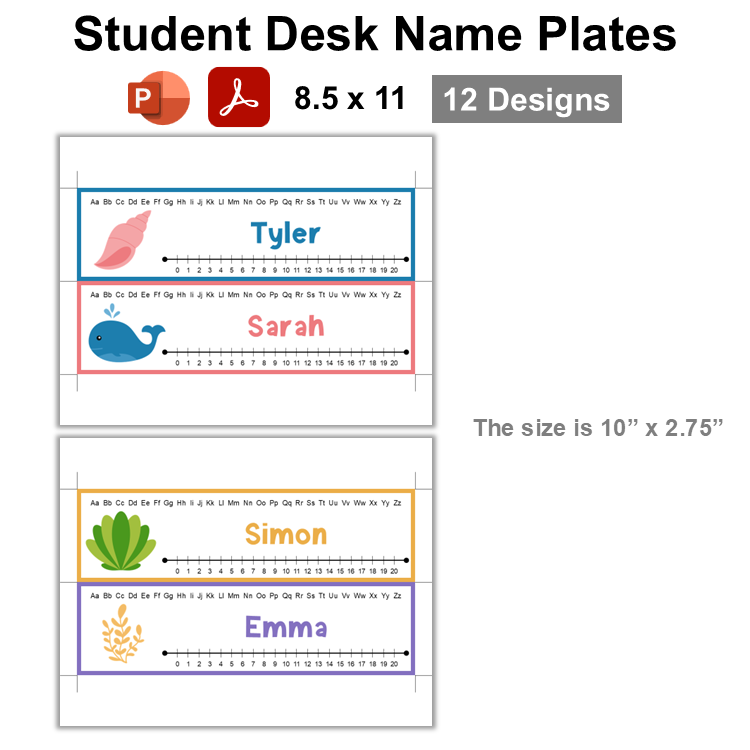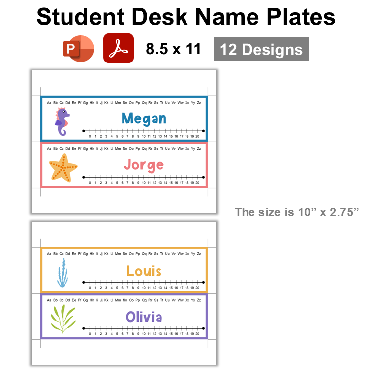 This listing is for a ready-to-print set of student desk plates with Under the Sea Theme and an editable template. There are 12 designs in this template.