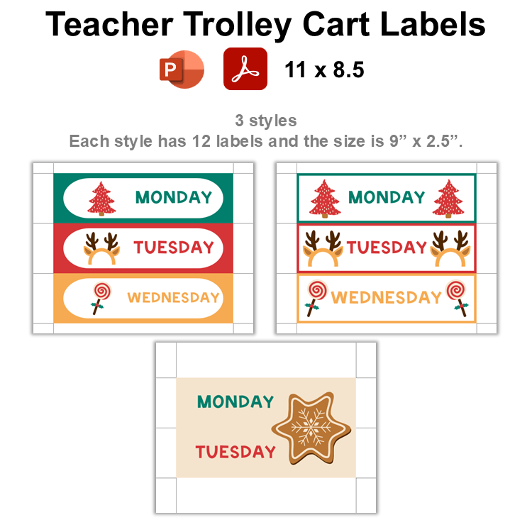 This listing is for an editable template of Teacher Trolley Cart Labels with Bright Christmas Theme.