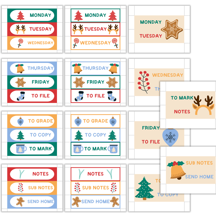 Teacher Trolley Cart Labels - Bright Christmas | Editable