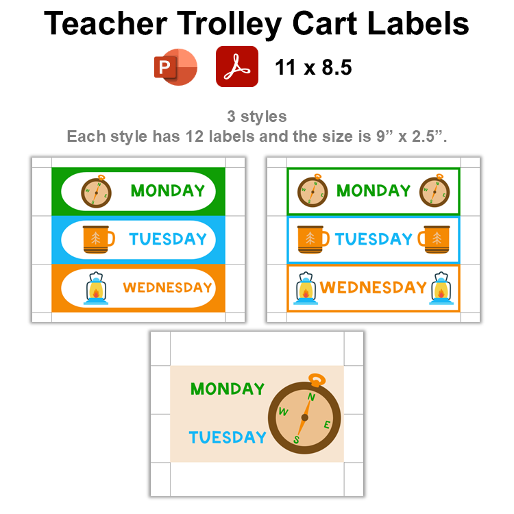 • 1 PDF file containing ready-to-print Teacher Trolley Cart Labels (14 Pages).
