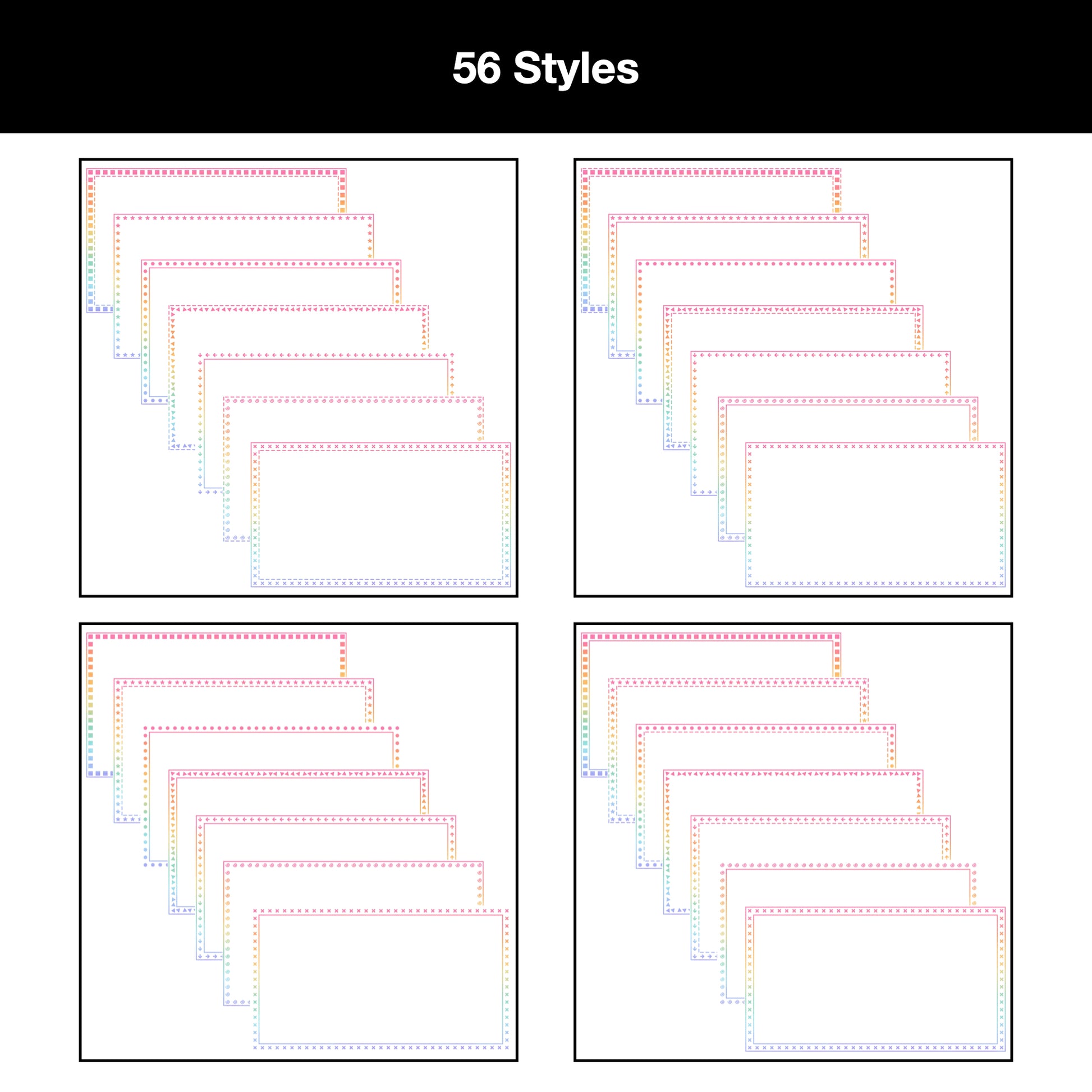 - 56 border styles in Pastel Rainbow color.