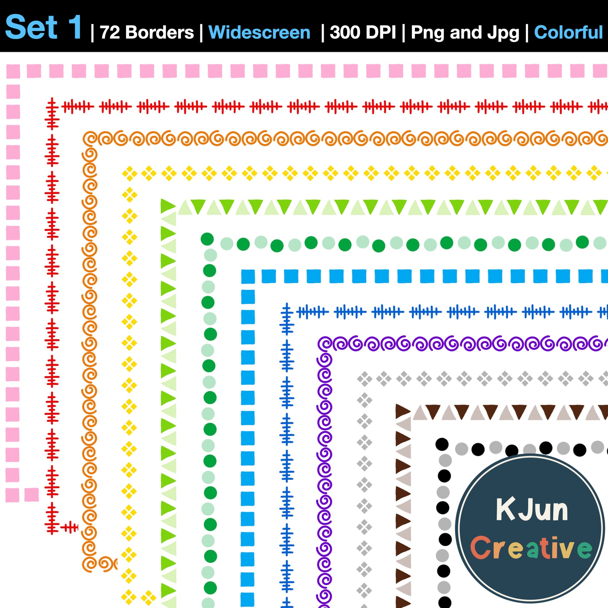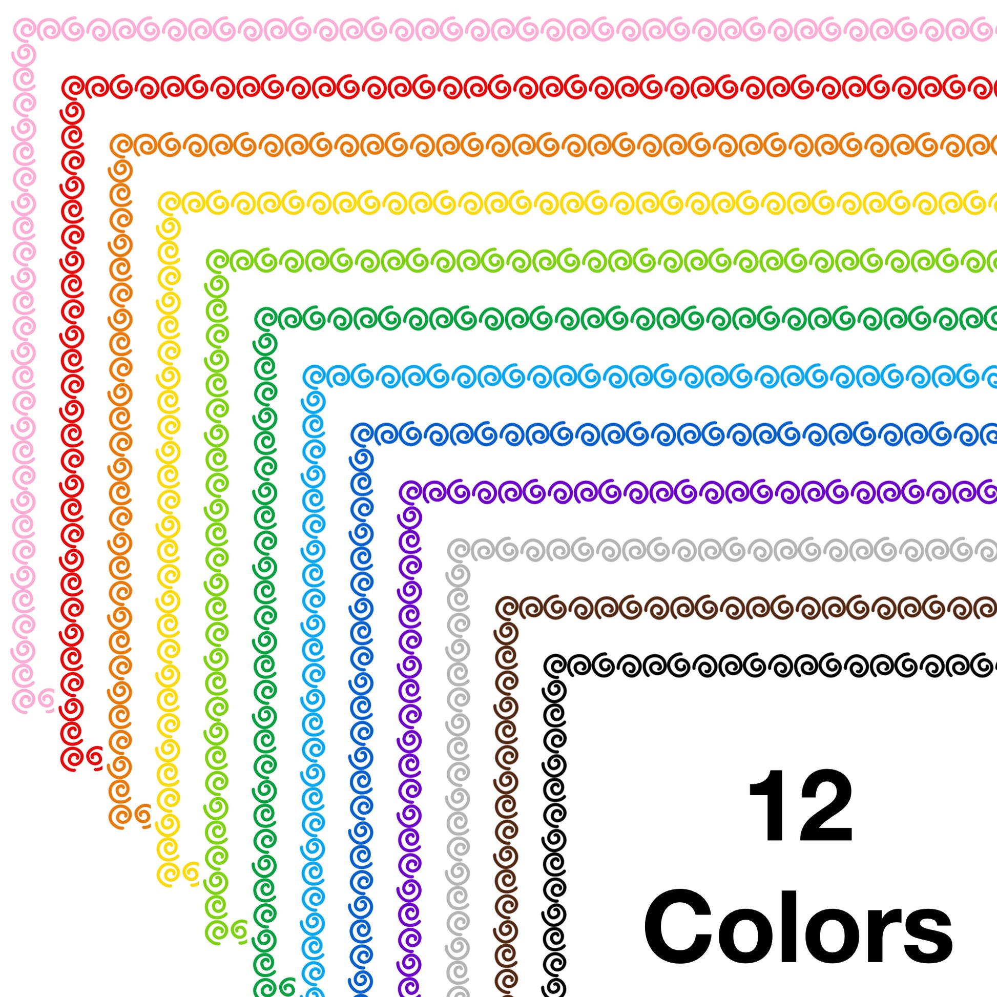 - 72 borders total. 6 border styles in 12 colors including a black and white version.