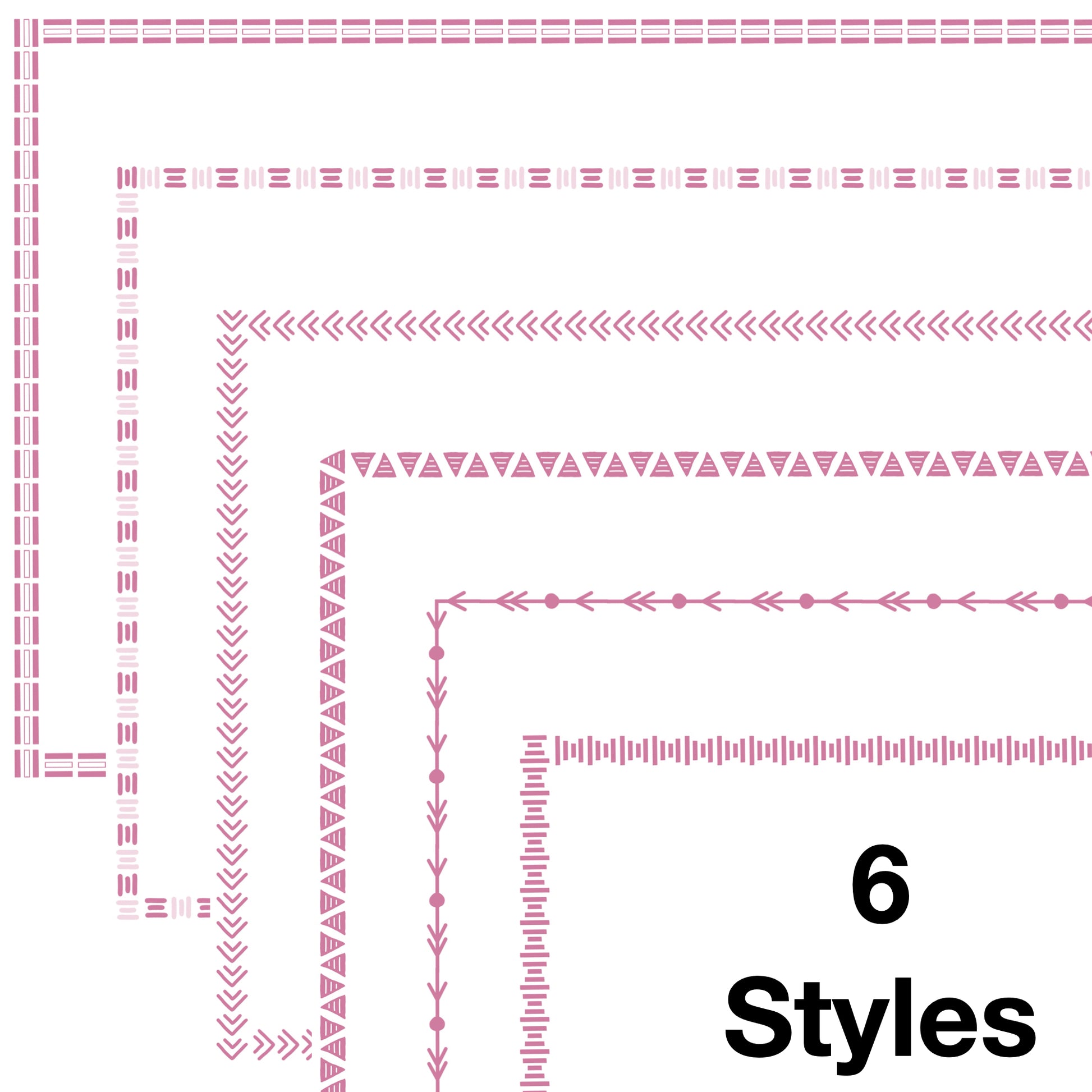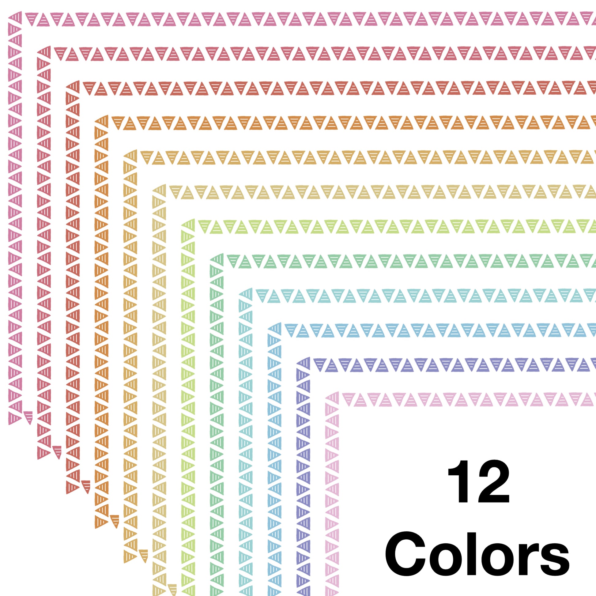 - 72 borders total. 6 border styles in 12 colors.