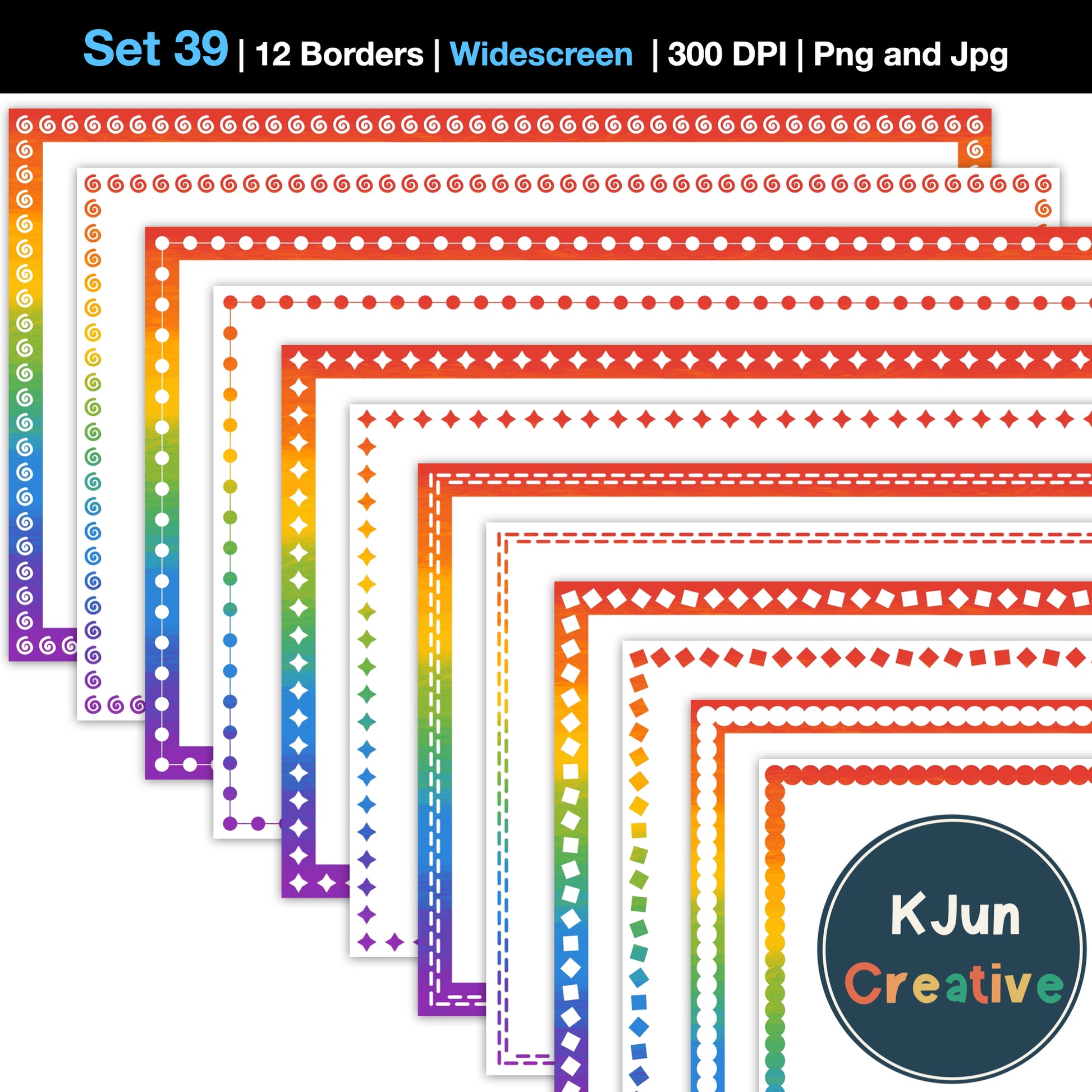 Widescreen Border Clipart Set 39 - Rainbow is a set of 12 borders designed to add fun and style to to Google Slides, PowerPoint, Keynote, or any slide.