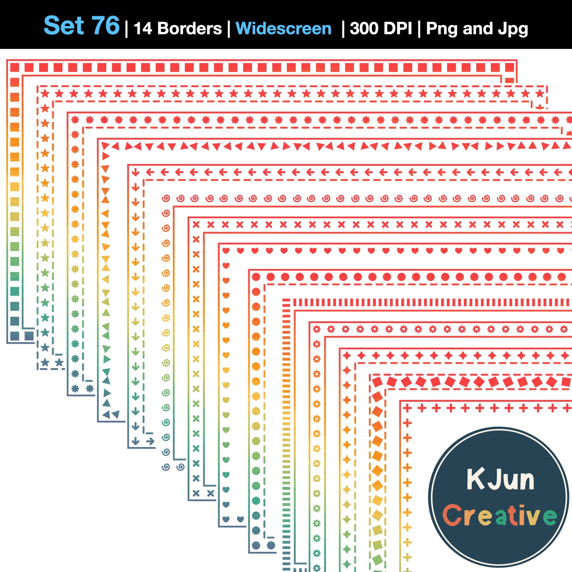 - 14 border styles in Vintage Rainbow color.