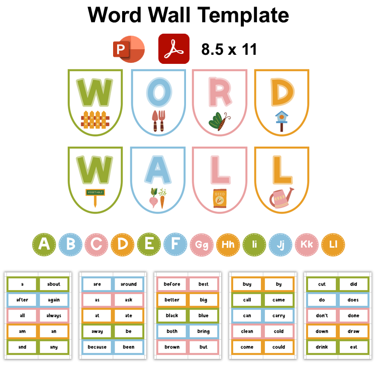 This listing is for Classroom Word Wall Template with Spring Garden Theme.
